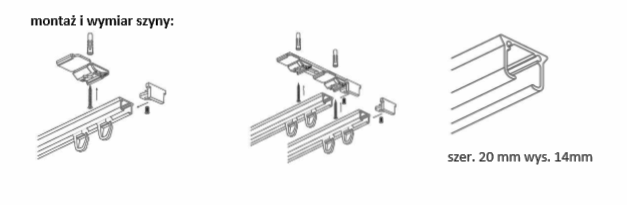 Szyna montowana do sufitu, możliwość dokupienia osłony karniszowej LK-01 oraz LK-02 (galeria zdjęć+produkty powiązane).