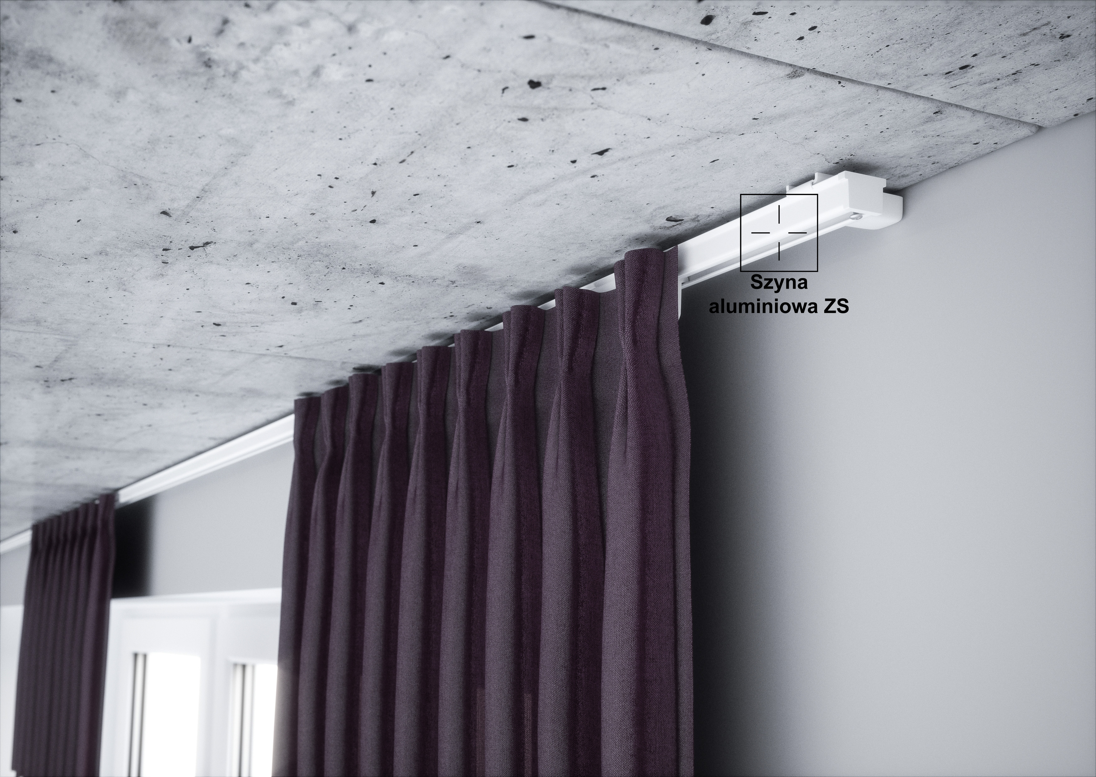 Szyna montowana do sufitu, możliwość dokupienia osłony karniszowej LK-01 oraz LK-02 (galeria zdjęć+produkty powiązane).